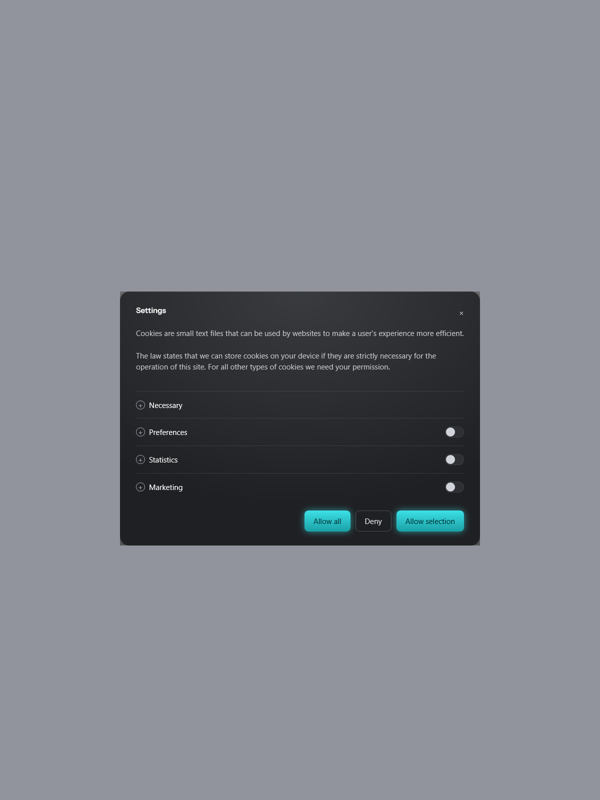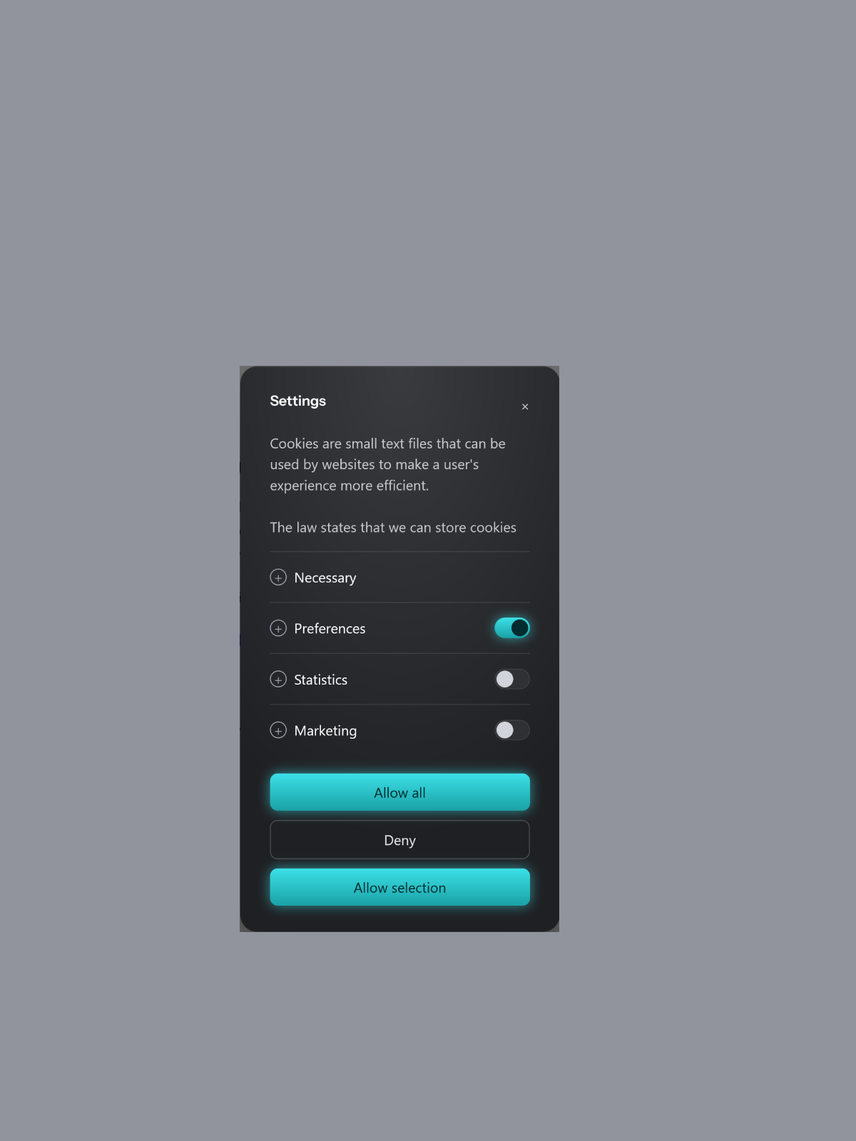 Enhanced Engagement Mechanics: Designed to increase visitor interaction with cookie settings through clear hierarchy and thoughtful UI styling.